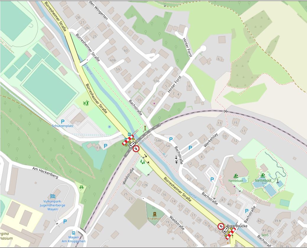 Die Pläne zur Verkehrsführung bzw. den notwendigen kurzfristigen Sperrungen werden – neben einer Beschilderung vor Ort – auch unter www.mayen.de/baustellen veröffentlicht.