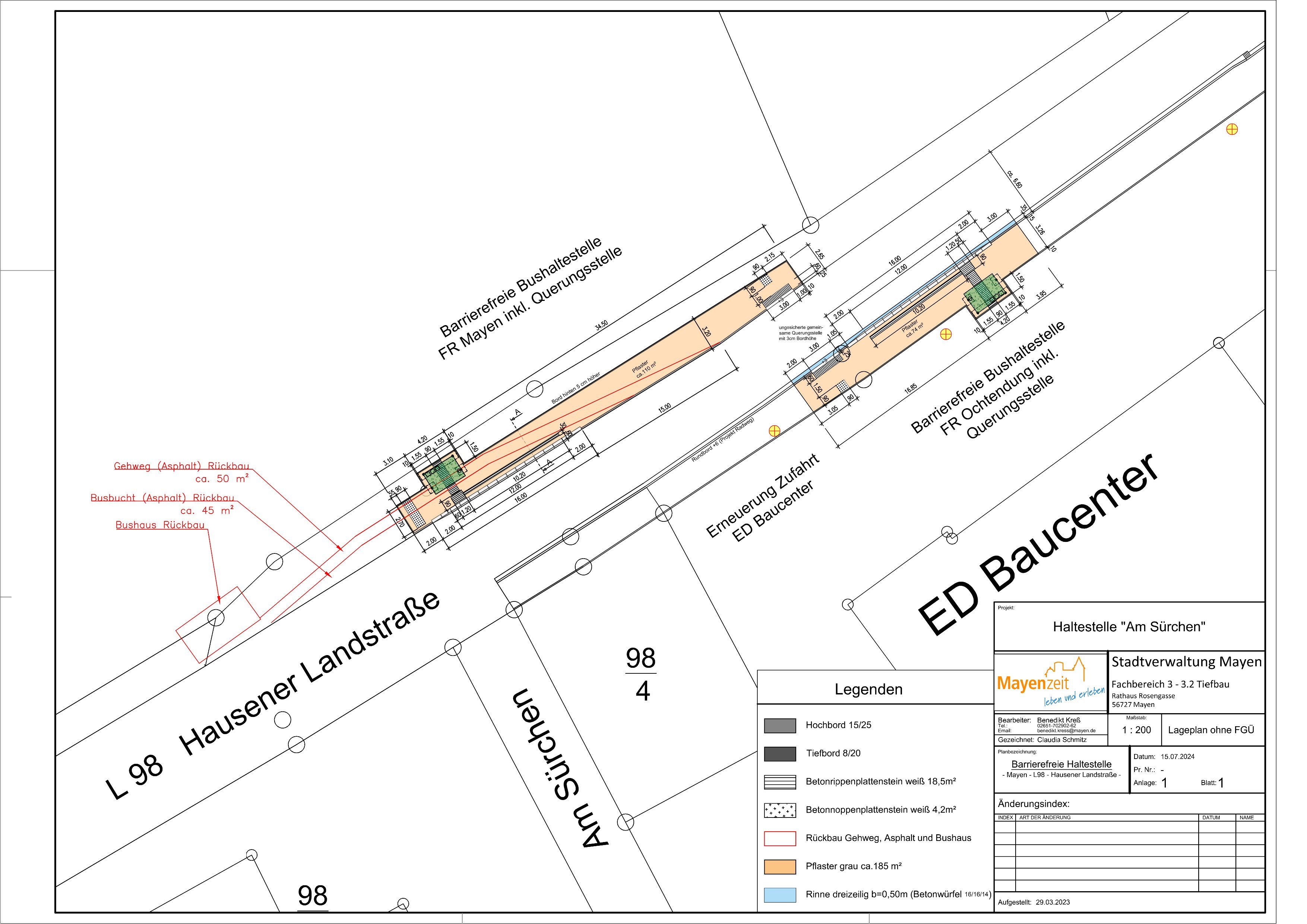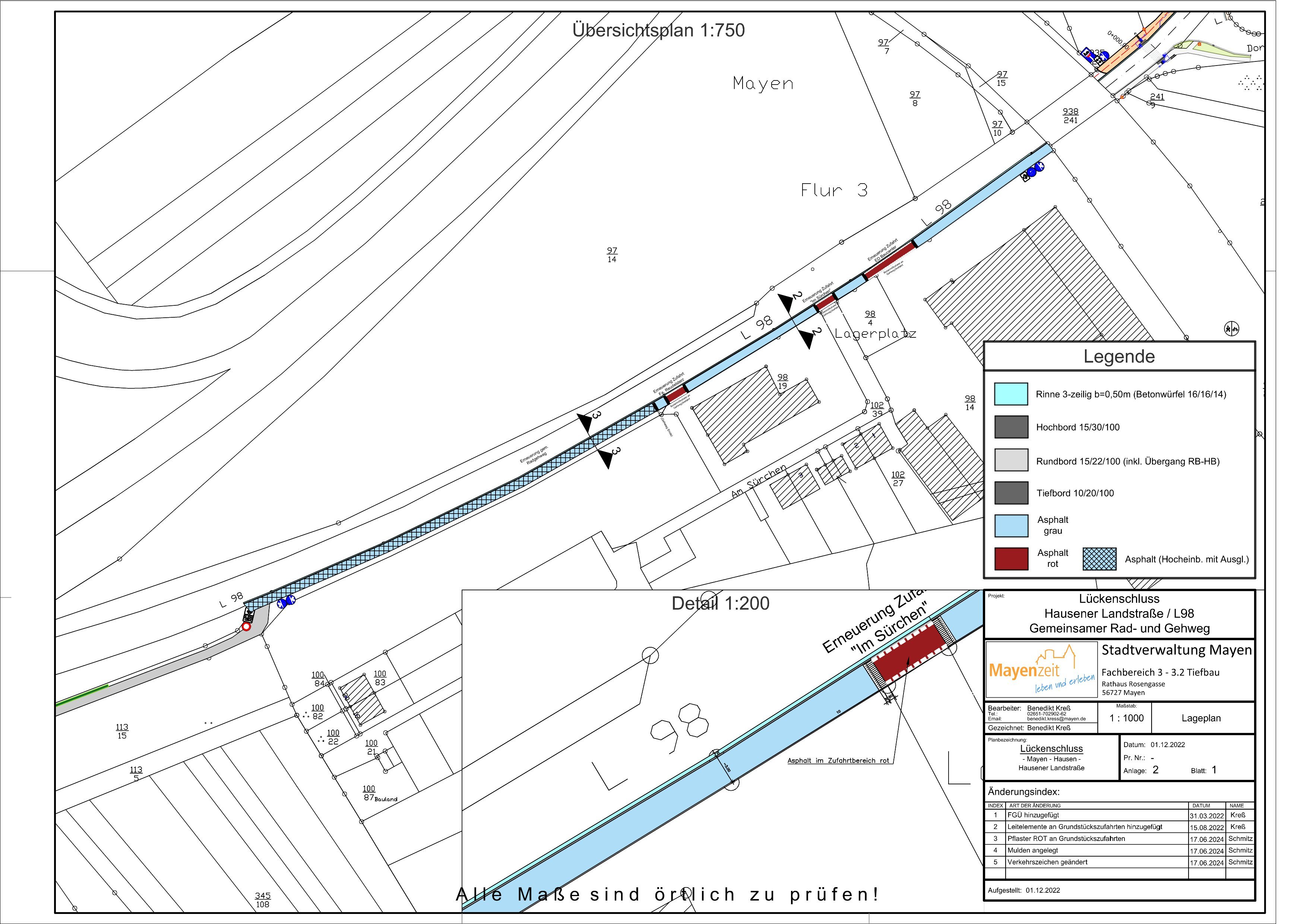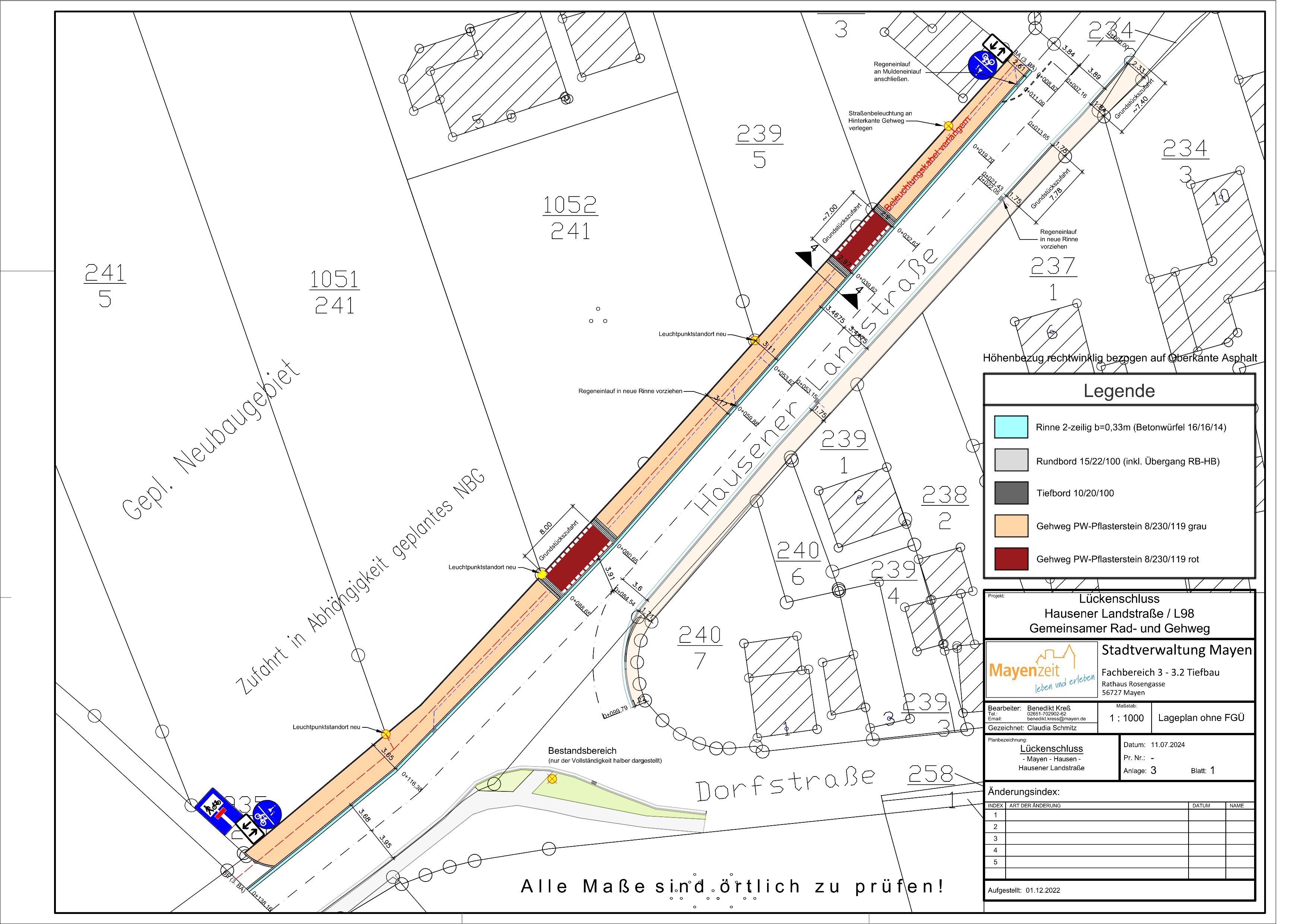 Die Maßnahme gliedert sich in insgesamt drei Bauabschnitte. Im ersten Bauabschnitt, der bereits im Ausbau ist, wird der Wirtschaftsweg zwischen OBI und dem Ende des landwirtschaftlichen Weges ertüchtigt, indem asphaltiert wird. Im nächsten Bauabschnitt soll der gemeinsame Rad- und Gehweg entlang der L98, die dazugehörigen Rinnenanlagen sowie die Zufahrten erneuert werden. Der Baubeginn für den zweiten Abschnitt ist ab dem 28. Oktober geplant und soll voraussichtlich noch in diesem Jahr abgeschlossen werden. Zudem ist hier geplant, die Haltestelle „Am Sürchen“ zu einer barrierefreien Haltestelle umzubauen. Für die zusätzliche Maßnahme ist eine halbseitige Sperrung in Verbindung mit einer Ampelanlage erforderlich. Im dritten und somit letzten Bauabschnitt wird ein gemeinsamer Rad- und Gehweg entlang der Hausener Landstraße angelegt. Hier kann voraussichtlich im neuen Jahr begonnen werden.
